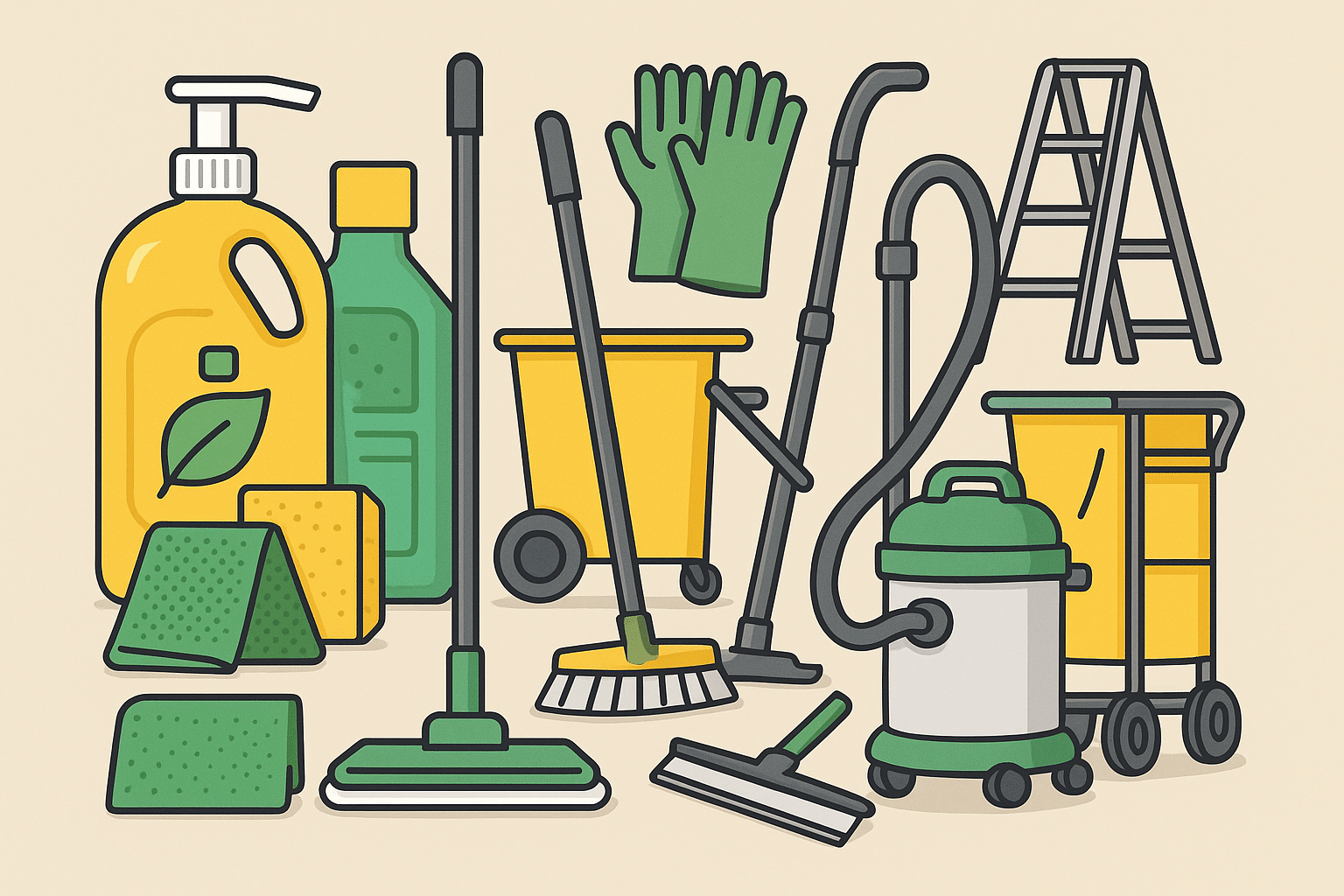 Launch your professional cleaning team with the right tools from day one. Below is a practical, field-tested kit list (plus specs) that covers general cleaning, deep cleaning, carpets, upholstery, and light exterior work — all aligned with Hello Services’ quality standards.